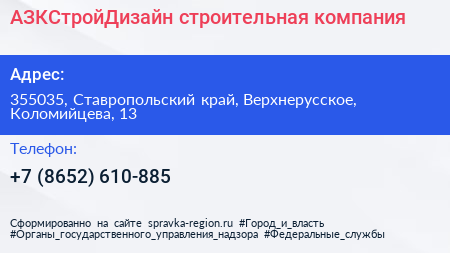 АЗКСтройДизайн, строительная компания по адресу 355035, Ставропольский край, Верхнерусское, Коломийцева, 13 в дальнейшем Организация, размещена в следующих категориях: