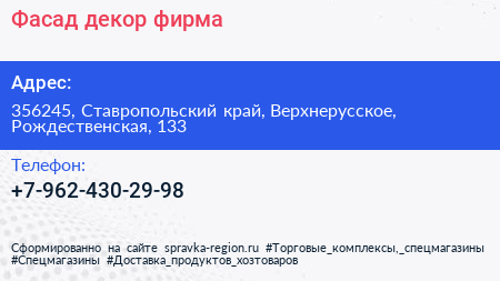 Фасад-декор, фирма по адресу 356245, Ставропольский край, Верхнерусское, Рождественская, 133 в дальнейшем Организация, размещена в следующих категориях: