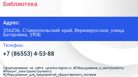 Библиотека по адресу 356236, Ставропольский край, Верхнерусское, улица Батурлина, 190Б в дальнейшем Организация, размещена в следующих категориях: