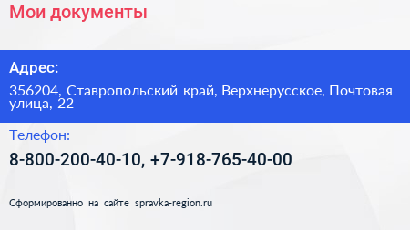 Мои документы по адресу 356204, Ставропольский край, Верхнерусское, Почтовая улица, 22 в дальнейшем Организация, размещена в следующих категориях:
