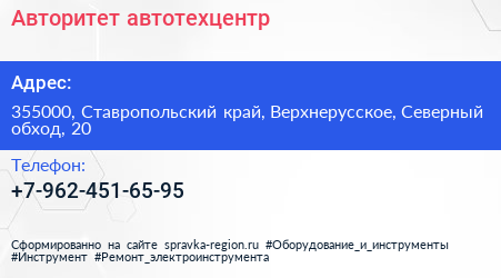 Авторитет, автотехцентр по адресу 355000, Ставропольский край, Верхнерусское, Северный обход, 20 в дальнейшем Организация, размещена в следующих категориях: