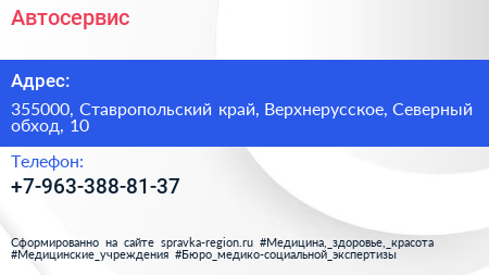 Автосервис по адресу 355000, Ставропольский край, Верхнерусское, Северный обход, 10 в дальнейшем Организация, размещена в следующих категориях: