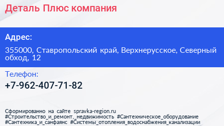 Деталь Плюс, компания по адресу 355000, Ставропольский край, Верхнерусское, Северный обход, 12 в дальнейшем Организация, размещена в следующих категориях: