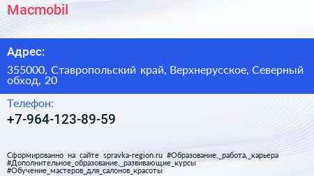 Macmobil по адресу 355000, Ставропольский край, Верхнерусское, Северный обход, 20 в дальнейшем Организация, размещена в следующих категориях: