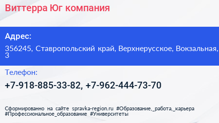 Виттерра-Юг, компания по адресу 356245, Ставропольский край, Верхнерусское, Вокзальная, 3 в дальнейшем Организация, размещена в следующих категориях: