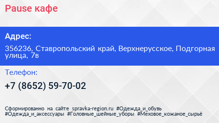 Pause, кафе по адресу 356236, Ставропольский край, Верхнерусское, Подгорная улица, 7в в дальнейшем Организация, размещена в следующих категориях: