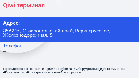 Qiwi, терминал по адресу 356245, Ставропольский край, Верхнерусское, Железнодорожная, 5 в дальнейшем Организация, размещена в следующих категориях: