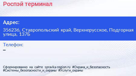 Роспэй, терминал по адресу 356236, Ставропольский край, Верхнерусское, Подгорная улица, 137Б в дальнейшем Организация, размещена в следующих категориях: