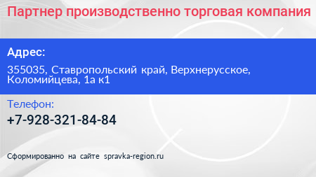 Партнер, производственно-торговая компания по адресу 355035, Ставропольский край, Верхнерусское, Коломийцева, 1а к1 в дальнейшем Организация, размещена в следующих категориях:
