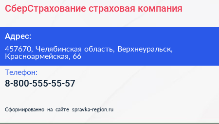 СберСтрахование, страховая компания по адресу 457670, Челябинская область, Верхнеуральск, Красноармейская, 66 в дальнейшем Организация, размещена в следующих категориях: