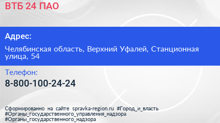 ВТБ 24, ПАО по адресу Челябинская область, Верхний Уфалей, Станционная улица, 54 в дальнейшем Организация, размещена в следующих категориях: