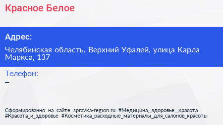 Красное & Белое по адресу Челябинская область, Верхний Уфалей, улица Карла Маркса, 137 в дальнейшем Организация, размещена в следующих категориях: