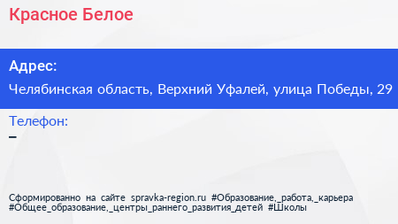 Красное & Белое по адресу Челябинская область, Верхний Уфалей, улица Победы, 29 в дальнейшем Организация, размещена в следующих категориях: