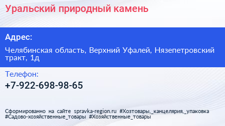 Уральский природный камень по адресу Челябинская область, Верхний Уфалей, Нязепетровский тракт, 1д в дальнейшем Организация, размещена в следующих категориях: