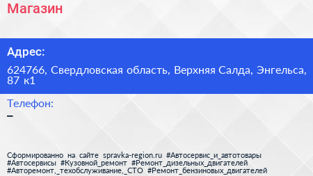 Адрес: Свердловская область, Верхняя Салда, Энгельса, 87 к1