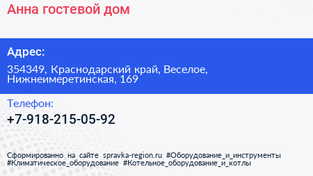 Анна, гостевой дом по адресу 354349, Краснодарский край, Веселое, Нижнеимеретинская, 169 в дальнейшем Организация, размещена в следующих категориях: