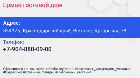 Ермак, гостевой дом по адресу 354375, Краснодарский край, Веселое, Хуторская, 79 в дальнейшем Организация, размещена в следующих категориях: