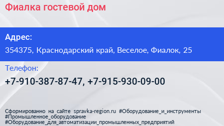 Фиалка, гостевой дом по адресу 354375, Краснодарский край, Веселое, Фиалок, 25 в дальнейшем Организация, размещена в следующих категориях:
