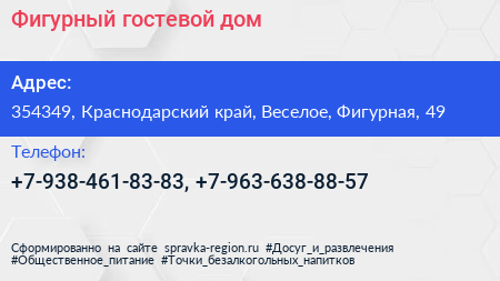 Фигурный, гостевой дом по адресу 354349, Краснодарский край, Веселое, Фигурная, 49 в дальнейшем Организация, размещена в следующих категориях: