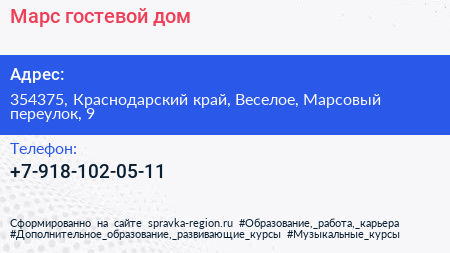 Марс, гостевой дом по адресу 354375, Краснодарский край, Веселое, Марсовый переулок, 9 в дальнейшем Организация, размещена в следующих категориях: