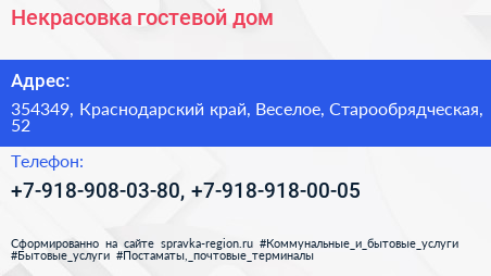 Некрасовка, гостевой дом по адресу 354349, Краснодарский край, Веселое, Старообрядческая, 52 в дальнейшем Организация, размещена в следующих категориях: