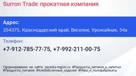 Surron Trade, прокатная компания по адресу 354375, Краснодарский край, Веселое, Урожайная, 54а в дальнейшем Организация, размещена в следующих категориях: