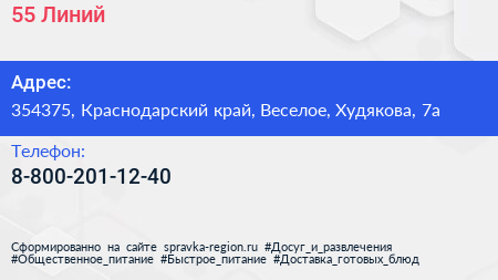 55 Линий по адресу 354375, Краснодарский край, Веселое, Худякова, 7а в дальнейшем Организация, размещена в следующих категориях: