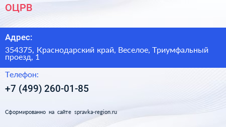 ОЦРВ по адресу 354375, Краснодарский край, Веселое, Триумфальный проезд, 1 в дальнейшем Организация, размещена в следующих категориях: