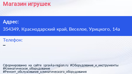 Магазин игрушек по адресу 354349, Краснодарский край, Веселое, Урицкого, 14а в дальнейшем Организация, размещена в следующих категориях: