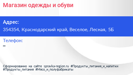 Магазин одежды и обуви по адресу 354354, Краснодарский край, Веселое, Лесная, 5Б в дальнейшем Организация, размещена в следующих категориях: