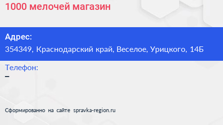 1000 мелочей, магазин по адресу 354349, Краснодарский край, Веселое, Урицкого, 14Б в дальнейшем Организация, размещена в следующих категориях: