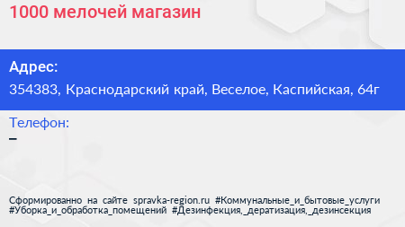 1000 мелочей, магазин по адресу 354383, Краснодарский край, Веселое, Каспийская, 64г в дальнейшем Организация, размещена в следующих категориях: