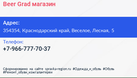 Beer Grad, магазин по адресу 354354, Краснодарский край, Веселое, Лесная, 5 в дальнейшем Организация, размещена в следующих категориях: