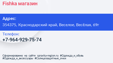 Fishka, магазин по адресу 354375, Краснодарский край, Веселое, Весёлая, 69г в дальнейшем Организация, размещена в следующих категориях: