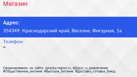 Магазин по адресу 354349, Краснодарский край, Веселое, Фигурная, 1а в дальнейшем Организация, размещена в следующих категориях: