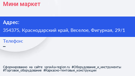 Мини-маркет по адресу 354375, Краснодарский край, Веселое, Фигурная, 29/1 в дальнейшем Организация, размещена в следующих категориях: