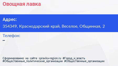 Овощная лавка по адресу 354349, Краснодарский край, Веселое, Общинная, 2 в дальнейшем Организация, размещена в следующих категориях: