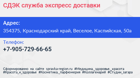 СДЭК, служба экспресс-доставки по адресу 354375, Краснодарский край, Веселое, Каспийская, 50а в дальнейшем Организация, размещена в следующих категориях:
