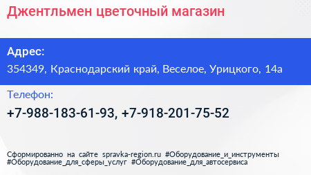 Джентльмен, цветочный магазин по адресу 354349, Краснодарский край, Веселое, Урицкого, 14а в дальнейшем Организация, размещена в следующих категориях: