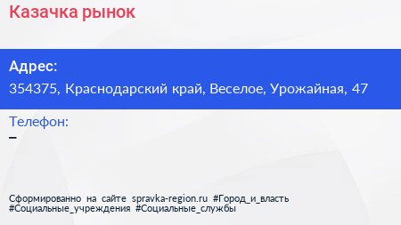Казачка, рынок по адресу 354375, Краснодарский край, Веселое, Урожайная, 47 в дальнейшем Организация, размещена в следующих категориях: