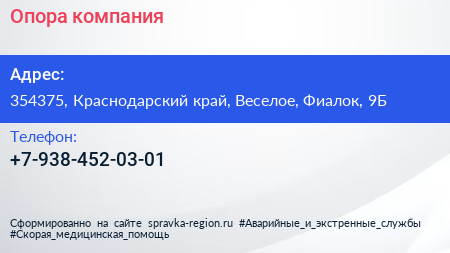 Опора, компания по адресу 354375, Краснодарский край, Веселое, Фиалок, 9Б в дальнейшем Организация, размещена в следующих категориях: