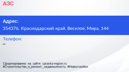АЗС по адресу 354376, Краснодарский край, Веселое, Мира, 144 в дальнейшем Организация, размещена в следующих категориях:
