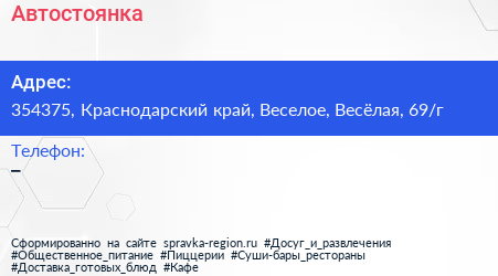 Автостоянка по адресу 354375, Краснодарский край, Веселое, Весёлая, 69/г в дальнейшем Организация, размещена в следующих категориях: