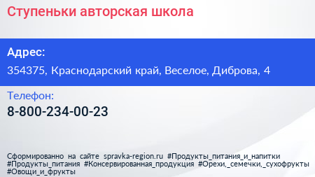 Ступеньки, авторская школа по адресу 354375, Краснодарский край, Веселое, Диброва, 4 в дальнейшем Организация, размещена в следующих категориях: