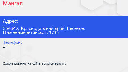 Мангал+ по адресу 354349, Краснодарский край, Веселое, Нижнеимеретинская, 171Б в дальнейшем Организация, размещена в следующих категориях: