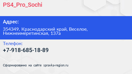 PS4_Pro_Sochi по адресу 354349, Краснодарский край, Веселое, Нижнеимеретинская, 137а в дальнейшем Организация, размещена в следующих категориях: