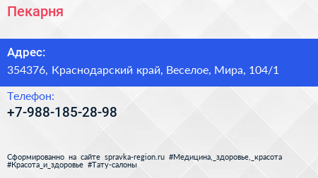 Пекарня по адресу 354376, Краснодарский край, Веселое, Мира, 104/1 в дальнейшем Организация, размещена в следующих категориях: