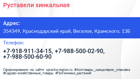 Руставели, хинкальная по адресу 354349, Краснодарский край, Веселое, Крамского, 13Б в дальнейшем Организация, размещена в следующих категориях: