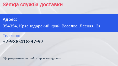 Sёmga, служба доставки по адресу 354354, Краснодарский край, Веселое, Лесная, 3а в дальнейшем Организация, размещена в следующих категориях: