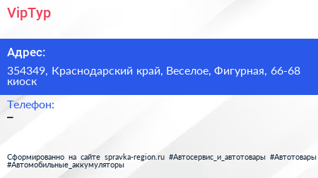 VipТур по адресу 354349, Краснодарский край, Веселое, Фигурная, 66-68 киоск в дальнейшем Организация, размещена в следующих категориях: